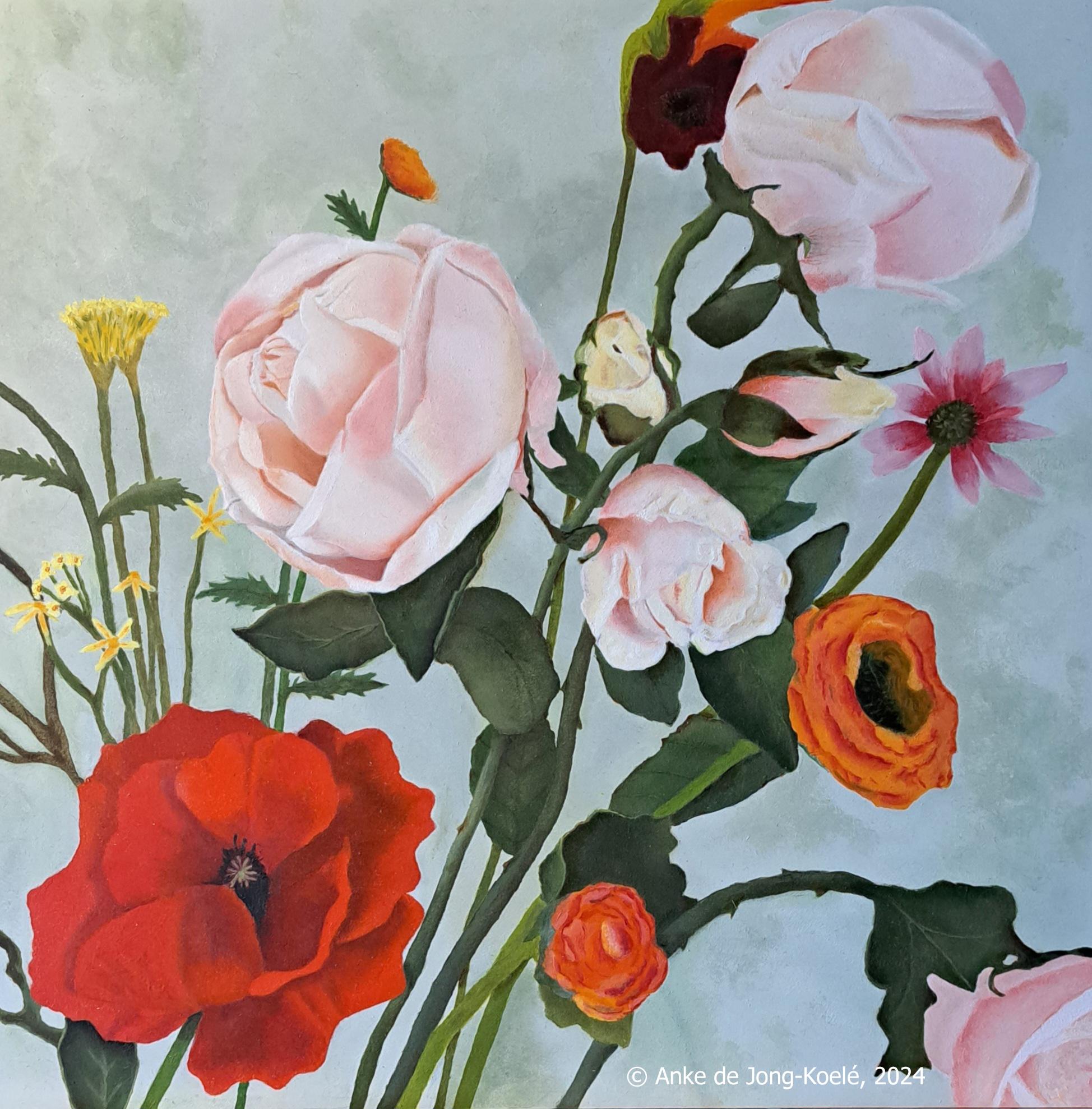 Bloemen. Paneel 30 x 30 cm. Verkocht