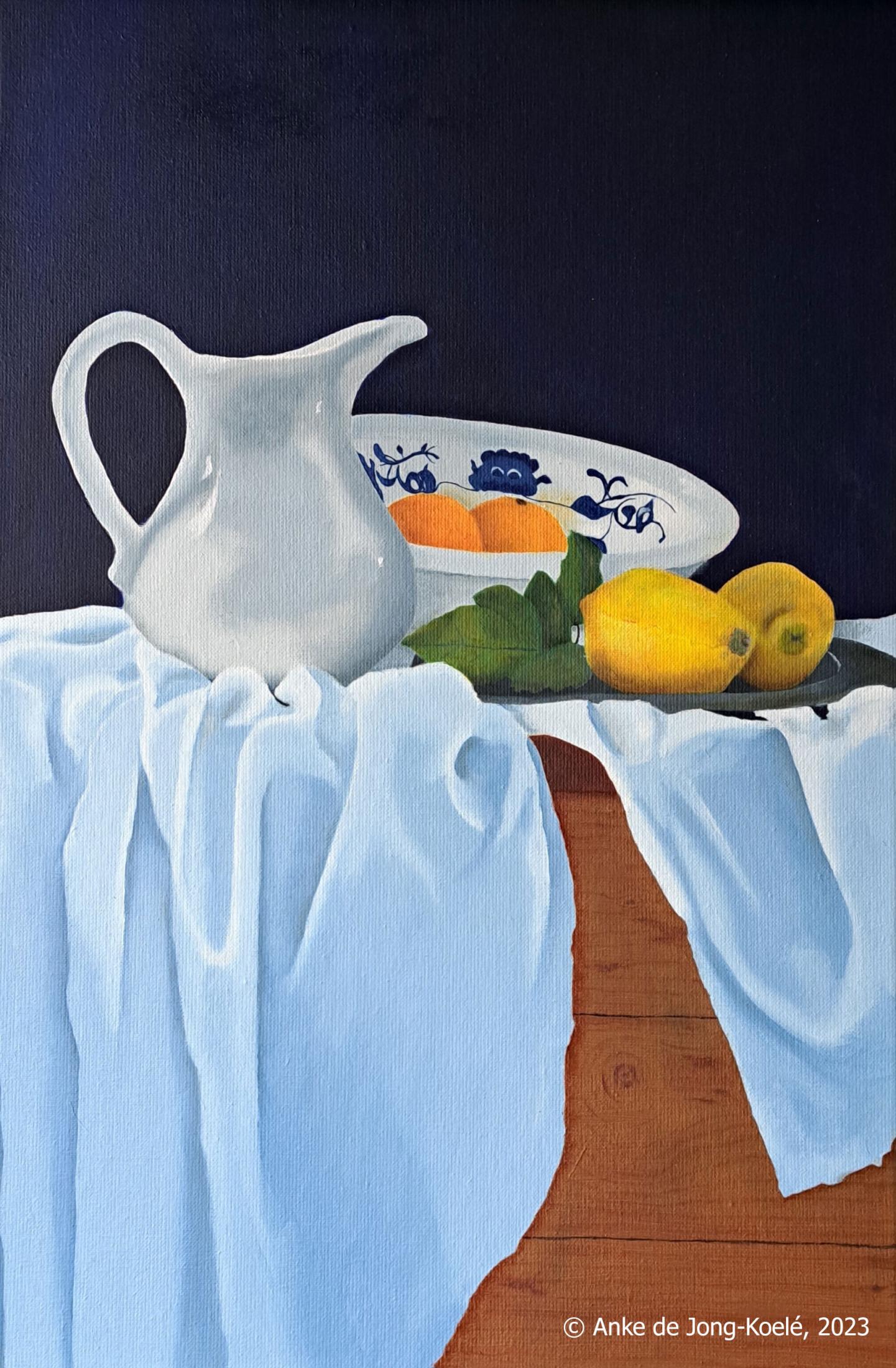 Kan met doek. Doek 40 x 60 cm. € 500,-