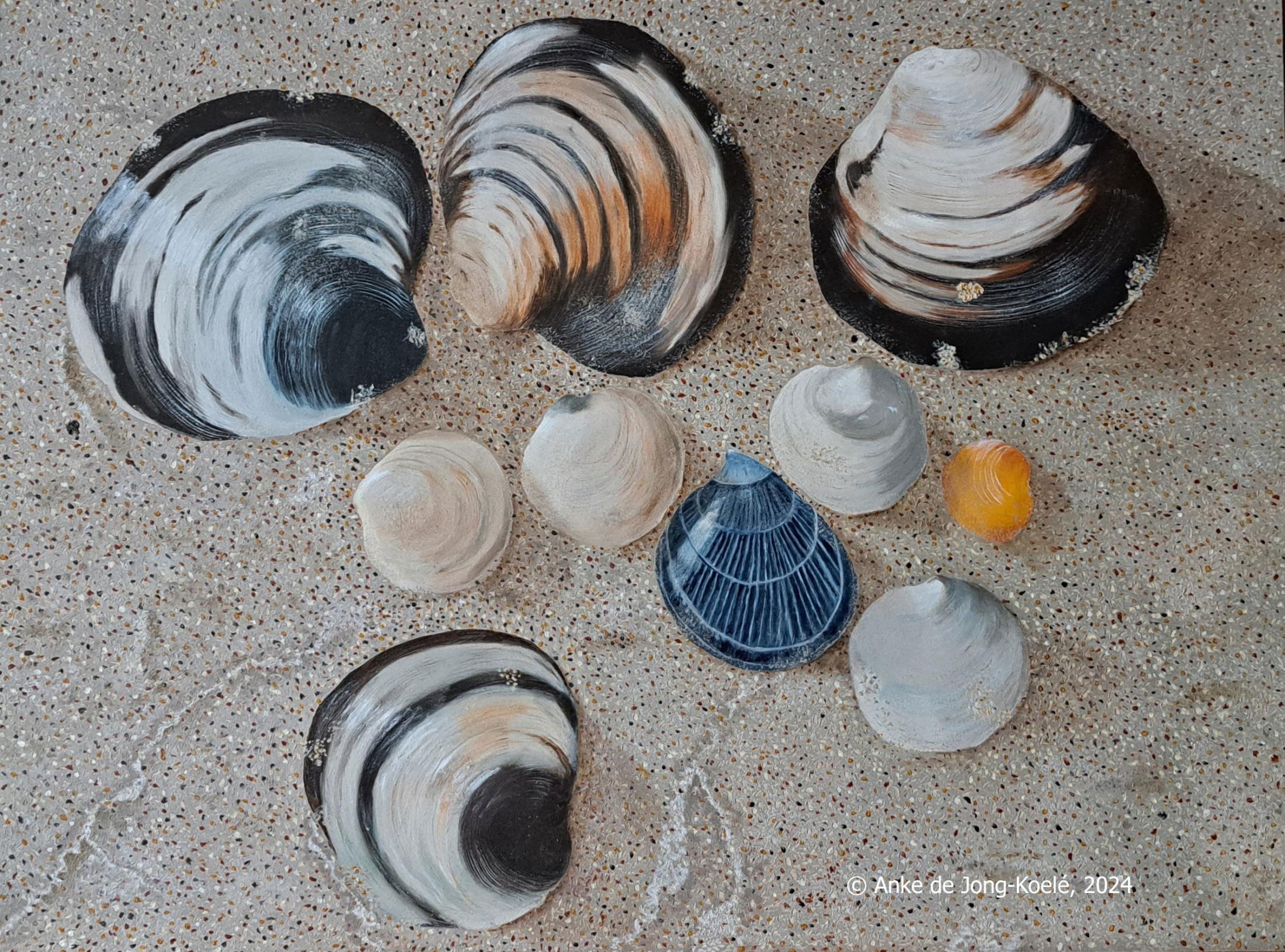 Schelpen. Paneel 30 x 40 cm. € 460,-