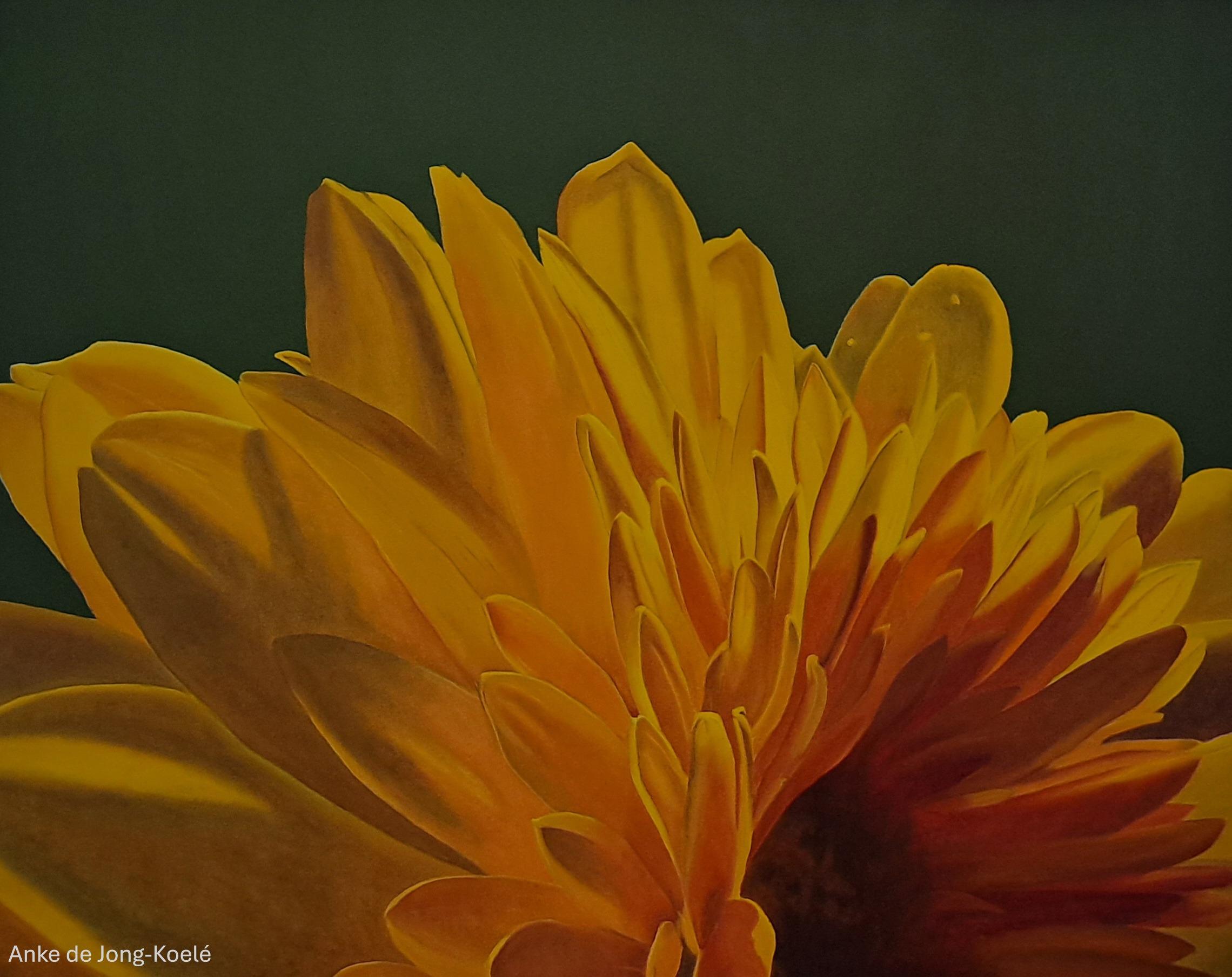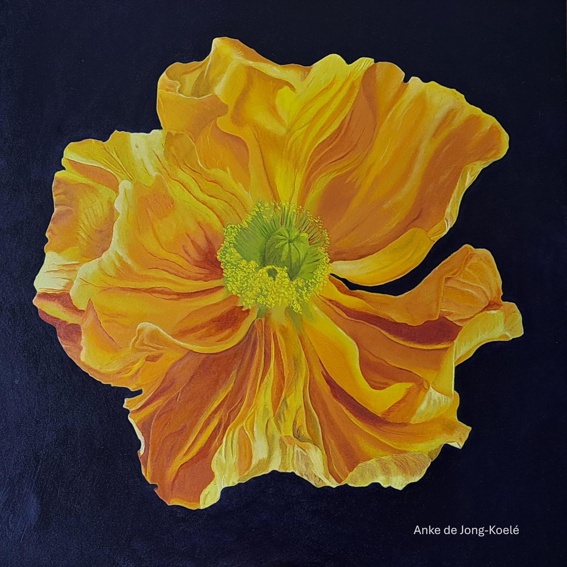 Gele papaver. Paneel 40 x 40 cm. Prijs € 460,-