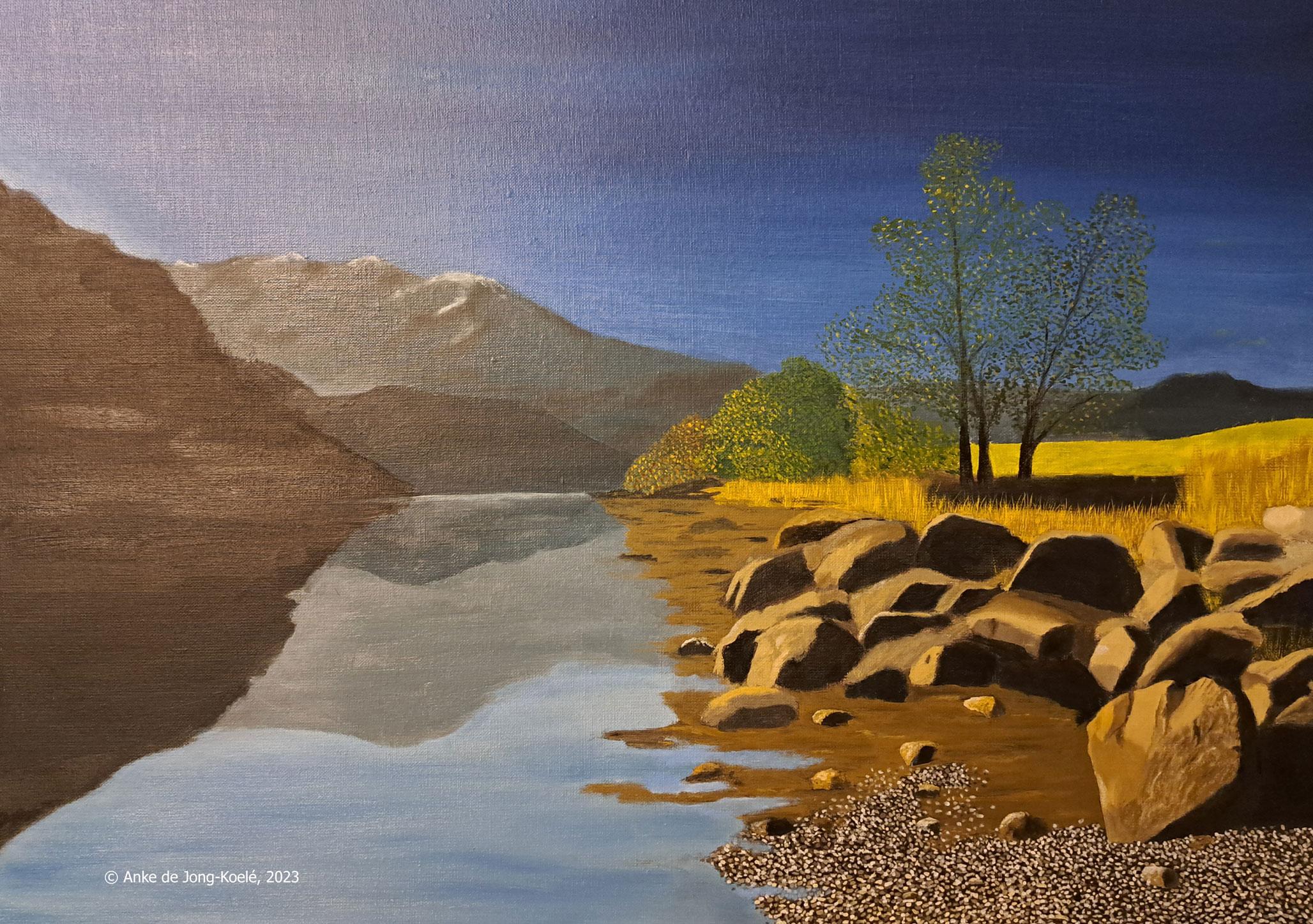 Rivier. Doek 50 x 70 cm. Prijs € 625,-