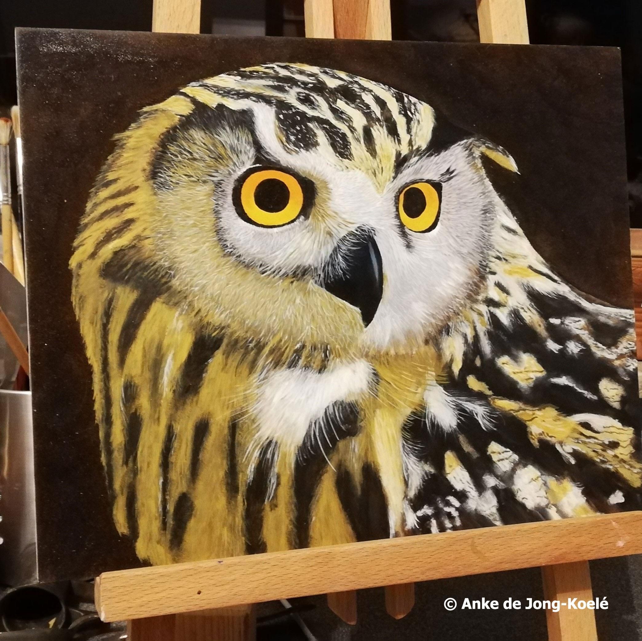 Uil. Paneel 30 x 40 cm. Prijs € 350,-